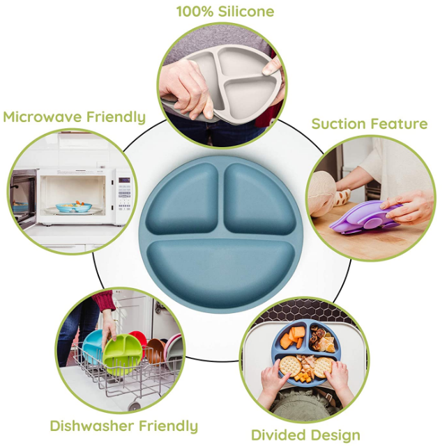 Silicone Suction Plates for Babies Divided Design Microwave & Dishwasher Safe